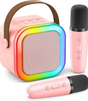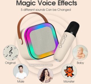 Portable Wireless Karaoke Speaker with 2 wireless Microphone, HIFI Stereo Sound Subwoofers, KTV party White karaoke
