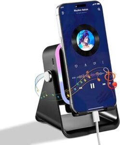 Wireless Inductive Audio Speaker Stand, 5-in-1 Phone Holder, Rechargeable Emergency Power Bank, 360° Adjustable Phone & Tablet Stand with Colorful Ambient Lights, a Gift Suitable for Both Men and Women