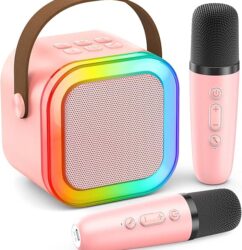 Portable Wireless Karaoke Speaker with 2 wireless Microphone, HIFI Stereo Sound Subwoofers, KTV party White karaoke